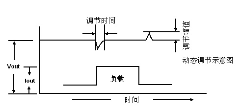 負(fù)載電流有階躍時(shí),直流變換器需要進(jìn)行調(diào)節(jié)的時(shí)間和幅值。