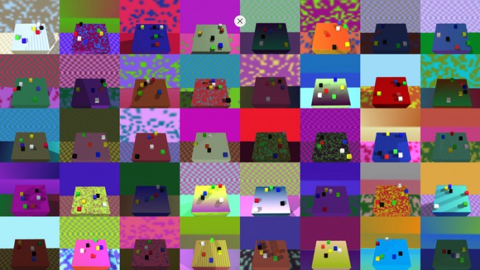 因為在現實生活中收集人員操作需要復雜的提取,因此在成本和時間上都有很高的要求。因此OpenAI將其搬到了虛擬現實世界中,讓團隊對環境有了更多的控制選項,并且能對背景、光線效果、紋理等諸多因素進行調整。