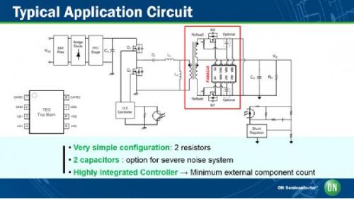 該器件優化用于現代LLC諧振轉換器拓撲結構,最大限度地減少同步整流MOSFET的體二極管傳導。它通過使用一個獨特的控制方法,消除了電流反向的隱患,還可以避免同步整流誤觸發。通過兩個感測輸入,可以準確地確定MOSFET兩端的漏源電壓,從而考慮到關于次級繞組的任何不對稱或不良耦合。如果經證實死區時間太長,那么偏置電壓相應降低。從而提高MOSFET的電壓閾值,繼而使同步整流器的導通時間延長(因此縮短相關的死區時間)。反之,如果死區時間太短,則降低MOSFET的電壓閾值,從而抑制同步整流器的導通期。指定FAN6248控制器能夠提高系統的電源能效,和實現在整個負載范圍內的穩定運行(無電流反向的風險)。