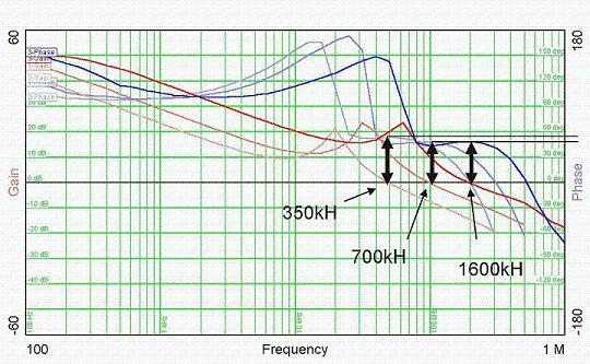 圖3:批量為350 kHz, 700 kHz和1600 kHz.時的波德圖 |