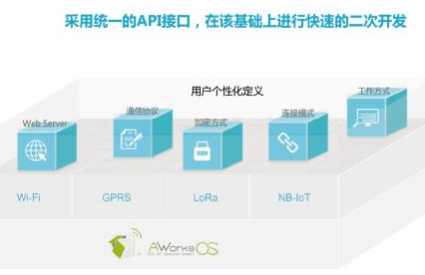 該系列產品基于ZLG 致遠電子AWorks 平臺軟件架構設計,內部集成了穩定的無線通信協議,并且全系列產品采用統一的API 接口,用戶可以針對自己的應用,在該基礎上進行快速的二次開發,無論使用Wi-Fi、GPRS 還是以后的LoRa、NB-IoT 產品,用戶只需實現一套應用即可適用于該系列的所有產品。