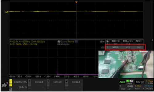 注:通道1信號幅度雖然非常小,但通過FFT分析還是可以定位出600K頻點的干擾。