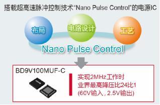 為滿足新市場對電源IC的需求,ROHM充分利用模擬設計技術和電源系統工藝技術優勢及垂直統合型生產體制,開發出超高速脈沖控制技術“Nano Pulse Control”,實現了“電源系統的單芯片化”。