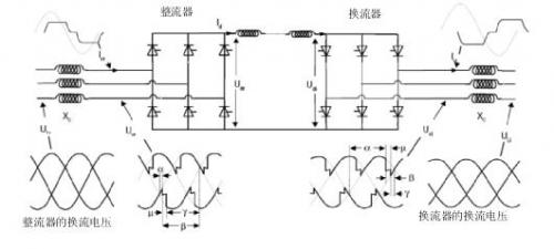 由于晶閘管只能接通,不能斷開,因此交流電壓會使晶閘管發生反向偏置并停止傳導。因此,LCC中的晶閘管的偏置取決于電網AC側用于換流的功率。在晶閘管正向偏置后導通時的延時決定了相位角延遲(觸發角)。晶閘管的相位角延遲實現了交流波的相位角控制。