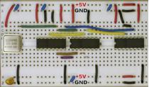 無焊試驗板專為采用DIP封裝的IC而設(shè)計。雖然一些IC采用DIP和表貼兩種封裝,但許多僅提供表貼封裝版本。因此幾乎不可能對這些IC進行試驗板試驗。作為一種解決方案的表貼部件可以安裝在適配器或分線板上,如圖4所示,它們具有DIP兼容引腳。